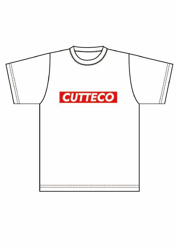 CUTTECOをシュプリーム風に前面プリント、首元に文字ロゴをプリントしたTシャツ ボディ:【Printstar00085-CVT】